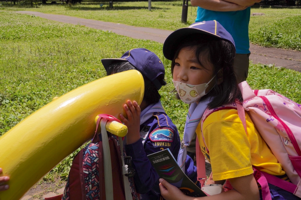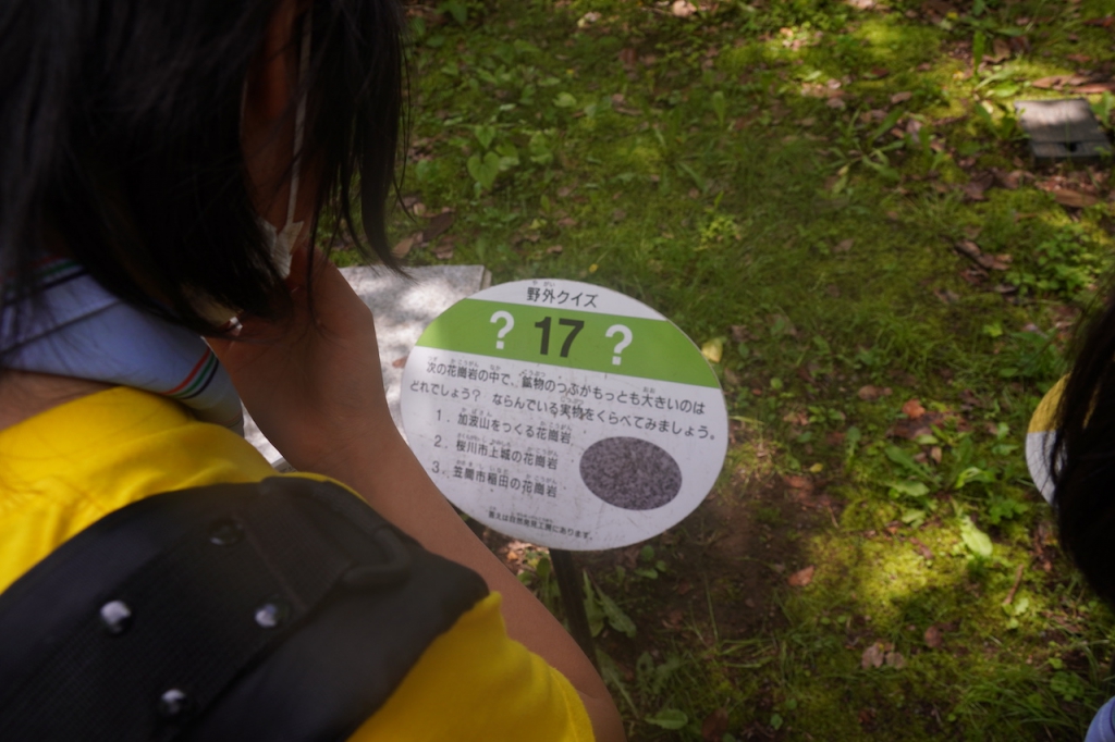 場所を茨城県自然博物館へ移して、渡された地図を頼りに20個のポイントを探し出し、そこにある3択クイズの回答を書き込んでいきます。20個のポイントに加えて、5つの特別チエックポイントも探し出し、それぞれの課題に挑戦します。