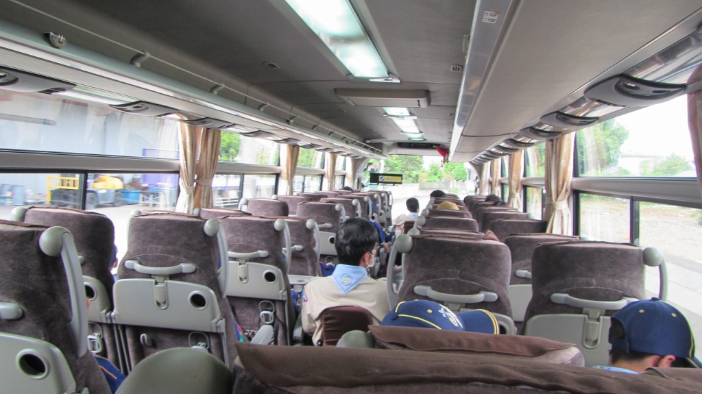 帰りのバスです。みんなおしゃべりしません。リーダーは少し寝ますzzzzzz。