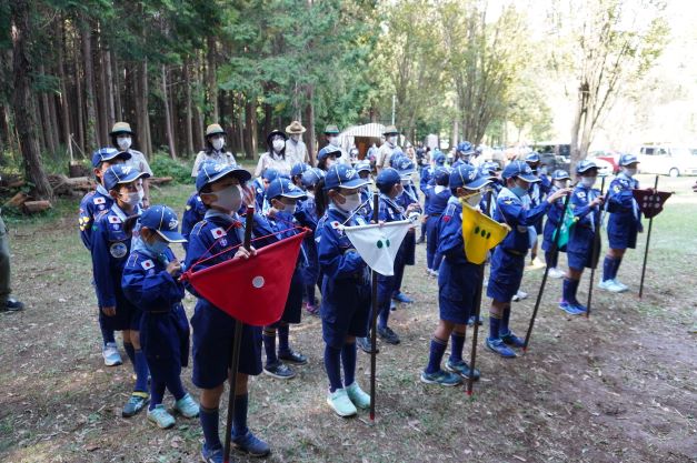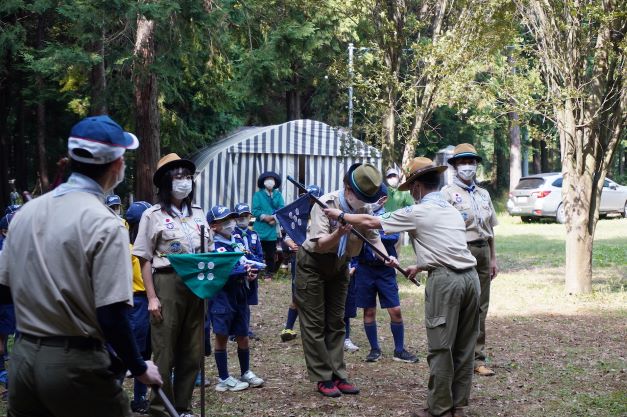 まず隊長からデンリーダーに組旗が渡され、それから暫定の組長に渡されました。