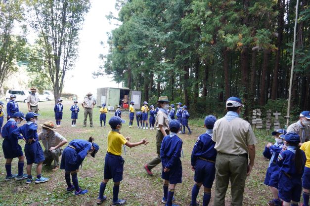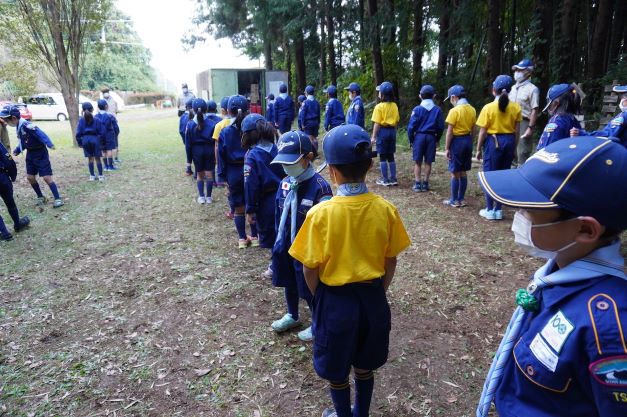 2本の指を立てるカブサインです。みんな、腕がしっかり伸びてきれいですね。
