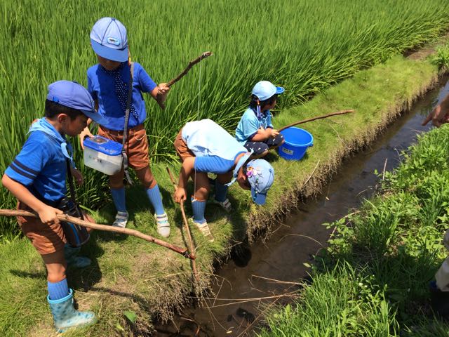 今回のビーバー隊の活動は、あかげらの森の近くの田んぼでザリガニ釣りにチャレンジしました。