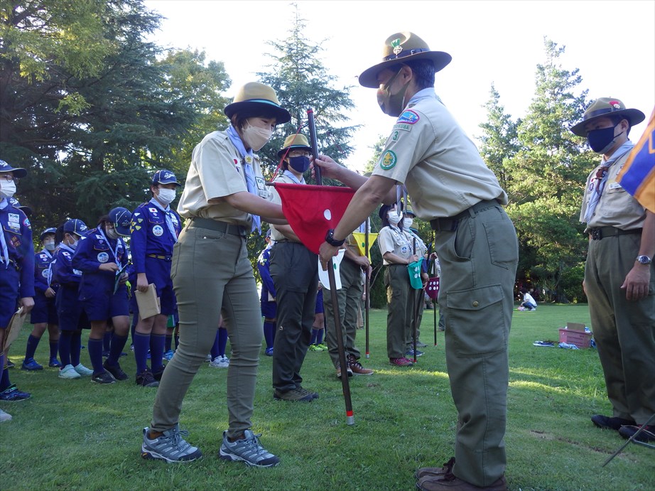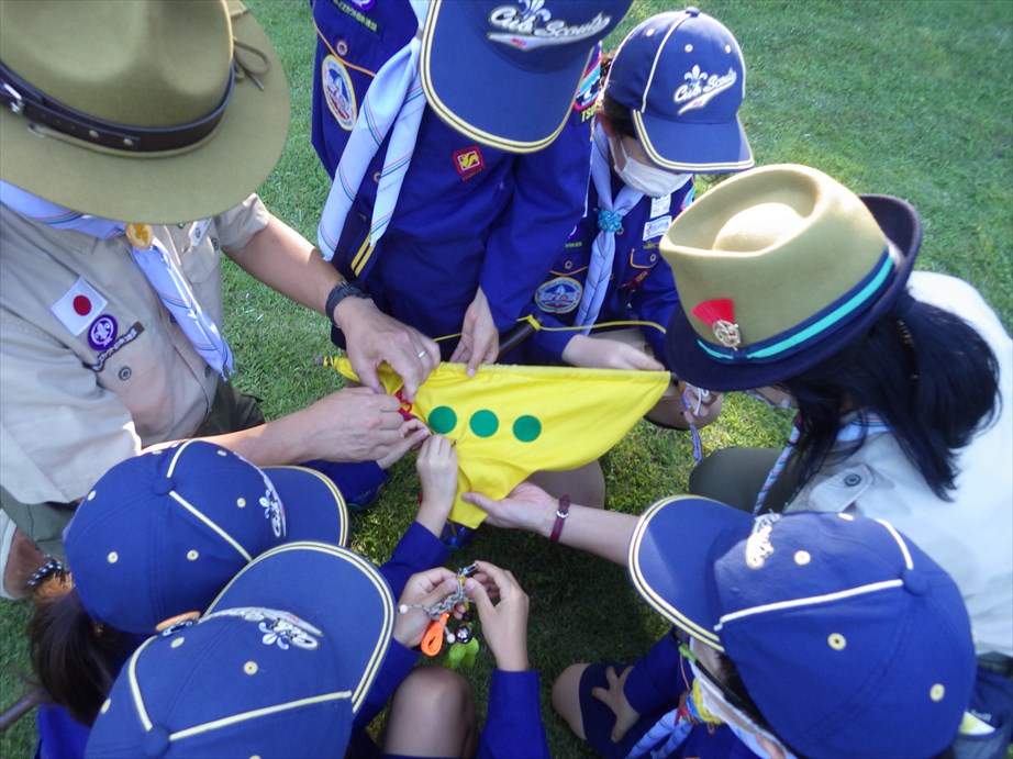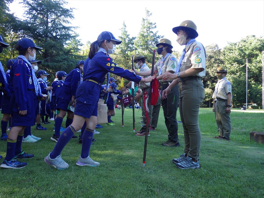 1年使った組旗は、それぞれ組長からデンリーダーへ!