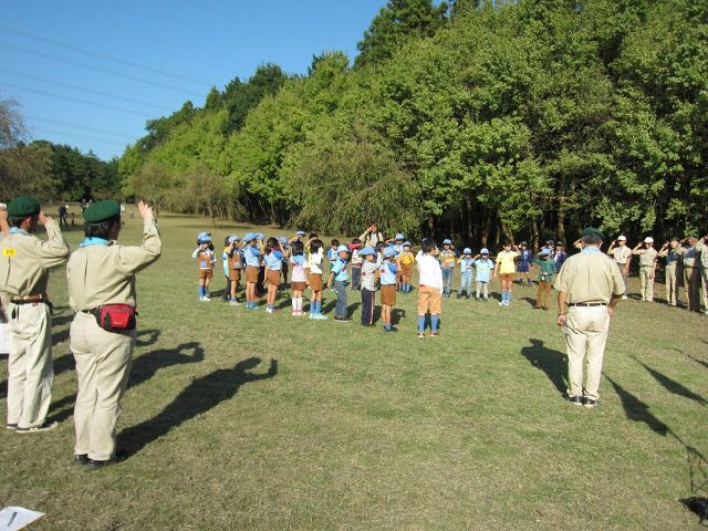 つくば市高崎自然の森に、県内の第4地区で活動するビーバースカウトたちが集まり、