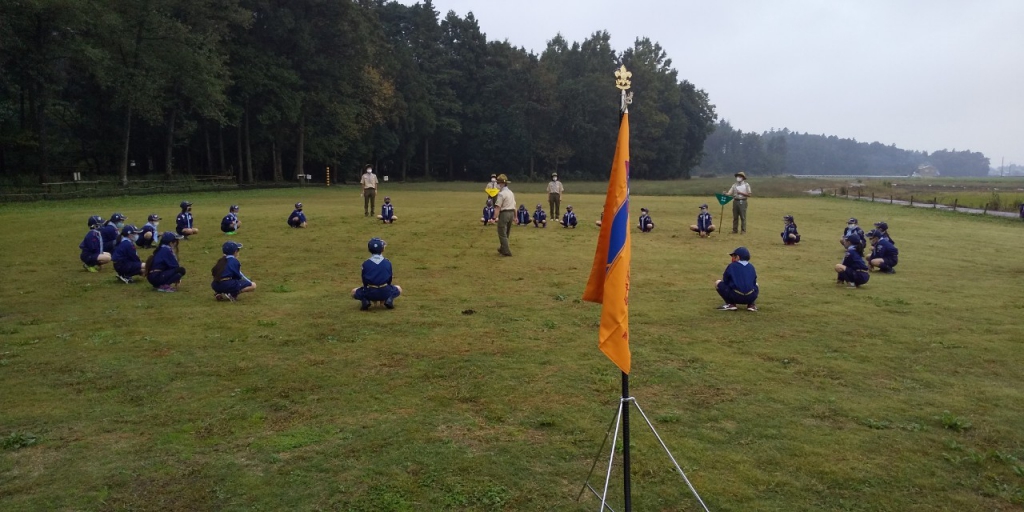想いのこもる隊集会は、りすの道で10月からカブ隊に仲間入りするビッグビーバーを迎えてスタート!