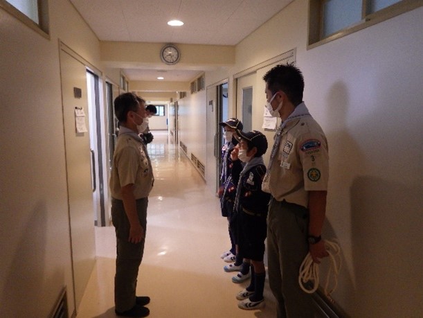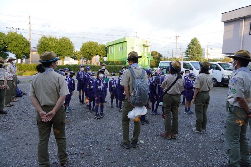 集合場所に戻って整列した時、隊長の号令でスカウト全員が回れ右して、