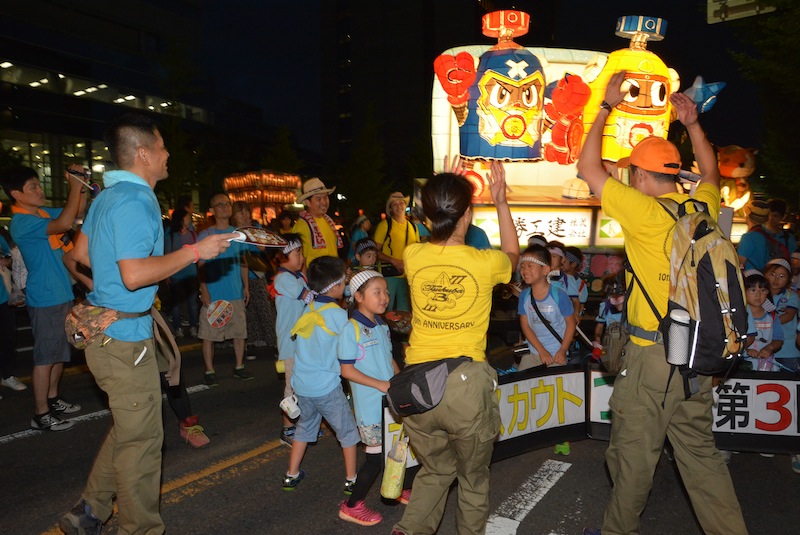 スカウトの元気なかけ声に沿道からの大きな拍手が起こります。