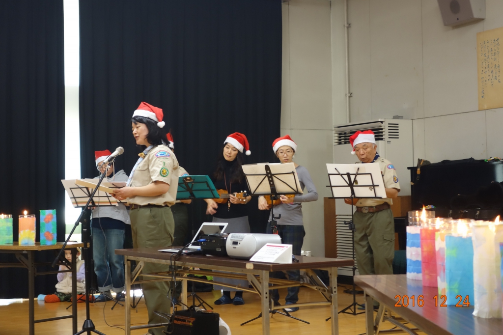そして第2部では、カブ隊と合同でクリスマスミニコンサートを楽しみました。
