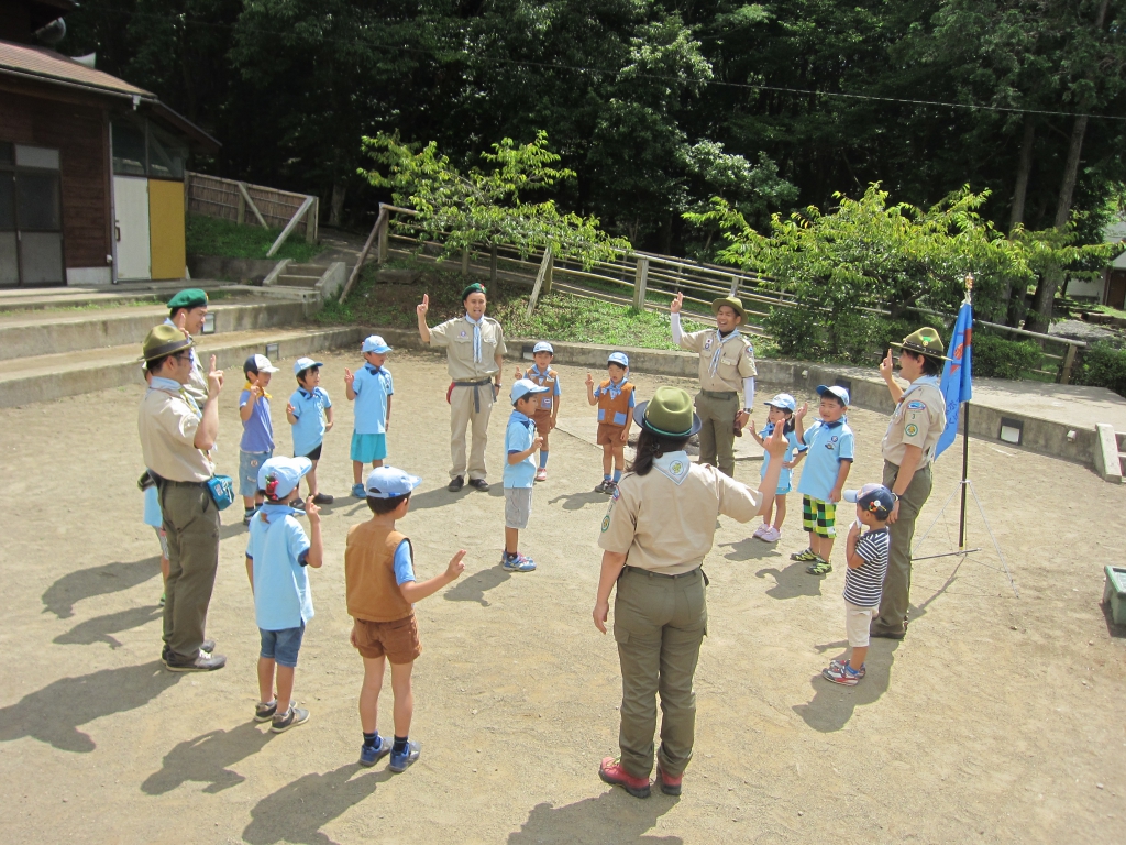 筑波山ふれあいの里で、沢あそびをしました。元気に挨拶をして、セレモニースタートです!