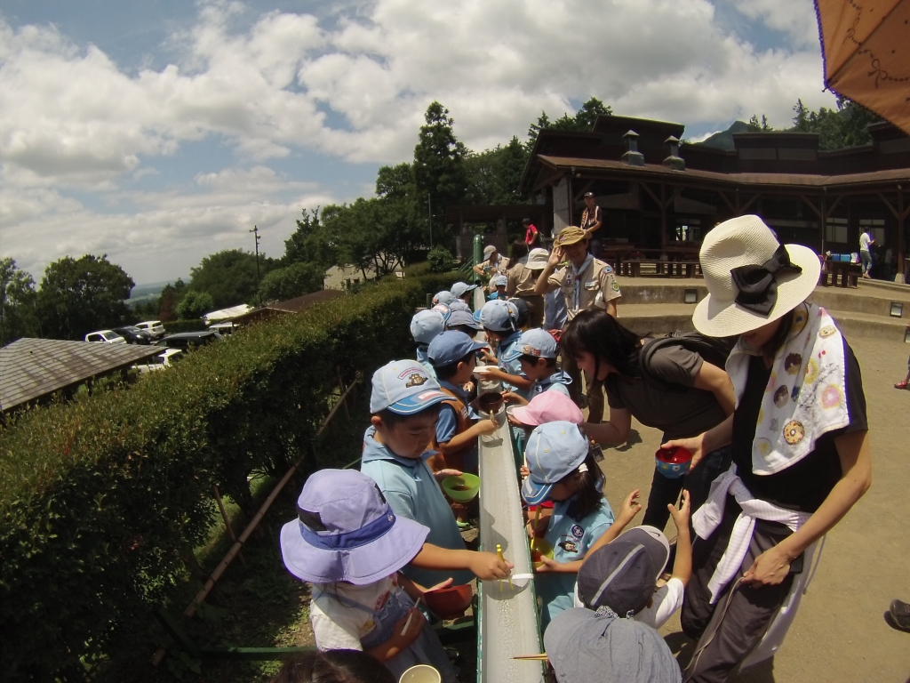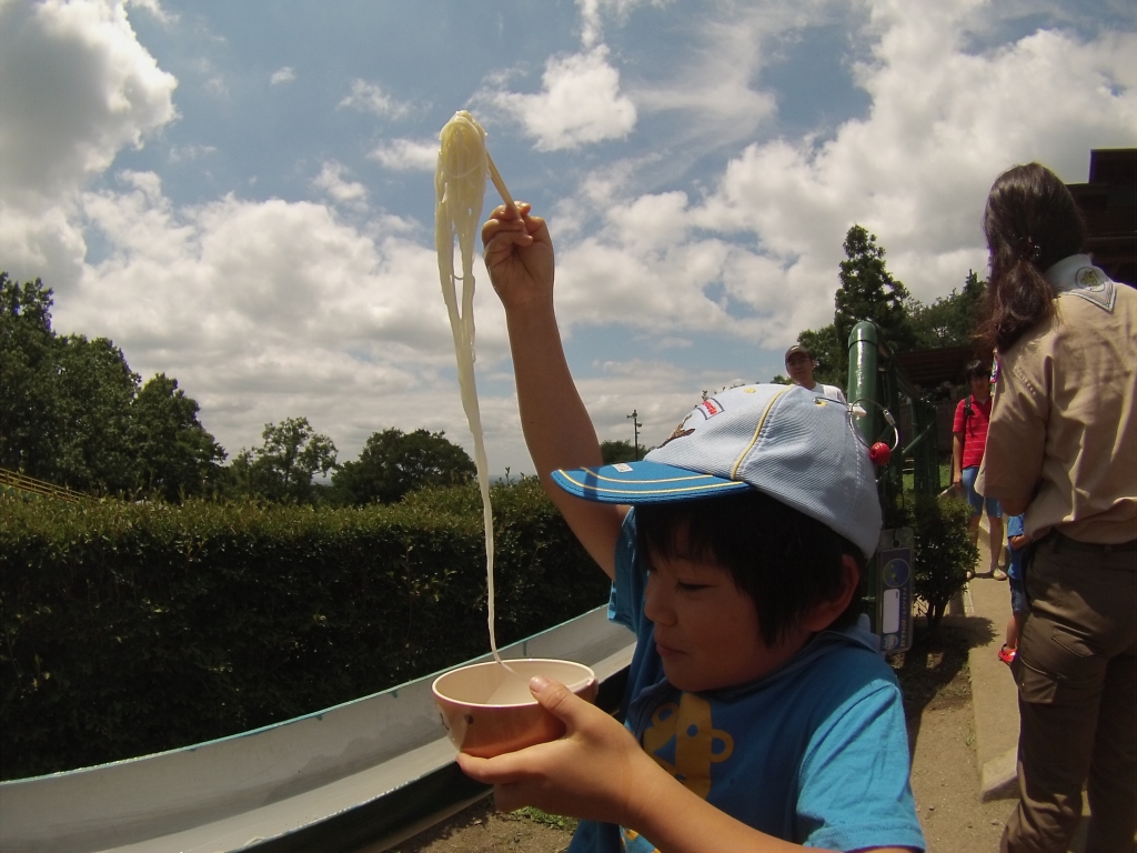 お楽しみ第2弾目の流しそうめん大会です。誰が、一番食べたかな~?
