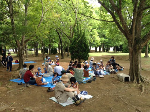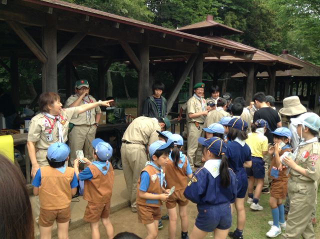 お昼ごはんのあとは、カブ隊・ボーイ隊と一緒にボンファイヤーダンスとじゃんけんゲームに加わって遊びました。そして最後は豪華賞品がいっぱいのビンゴ大会で盛り上がりました。今回も中身の濃い活動でスカウトたちも大満足だったようです。