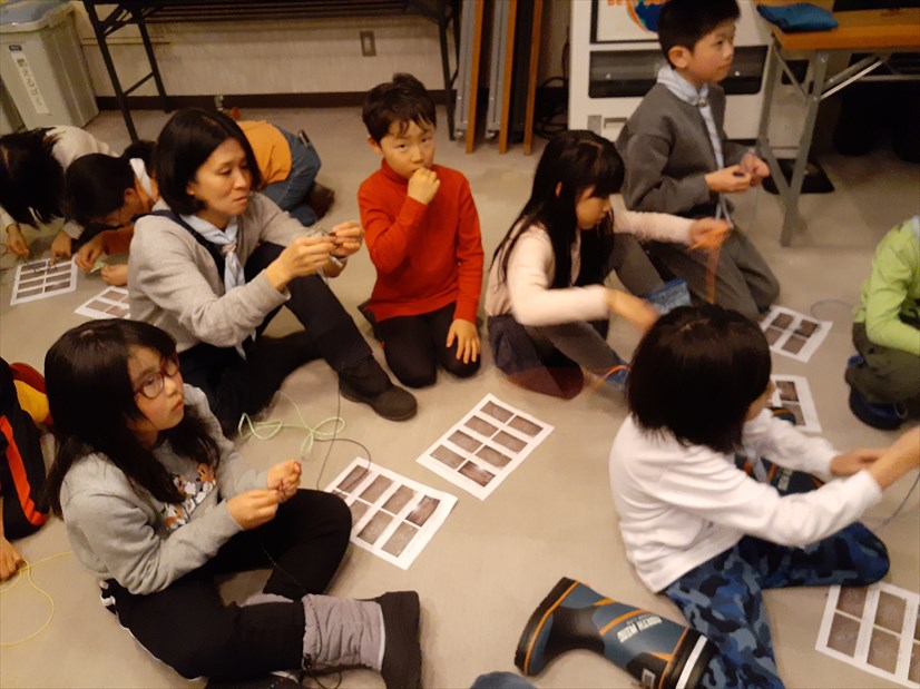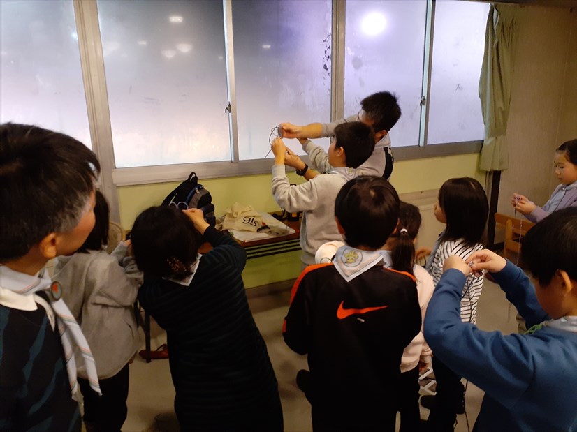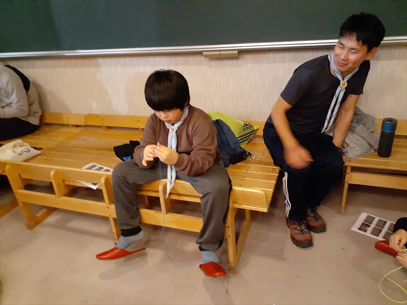 ホテルに戻ったら、スカウトらしくロープワークでネッチリング作りをしました。