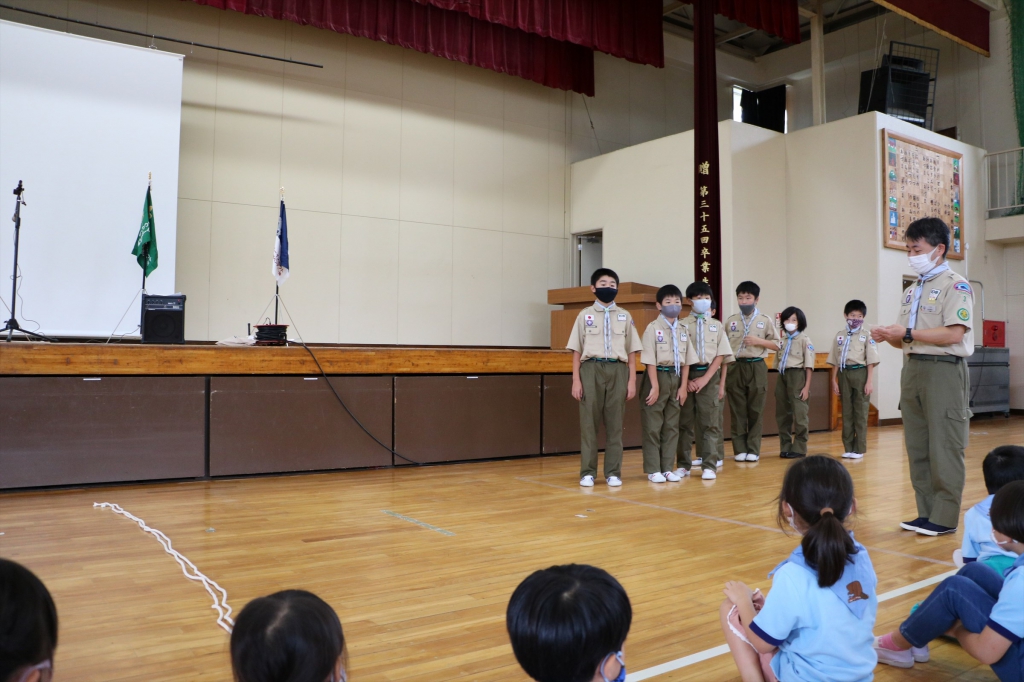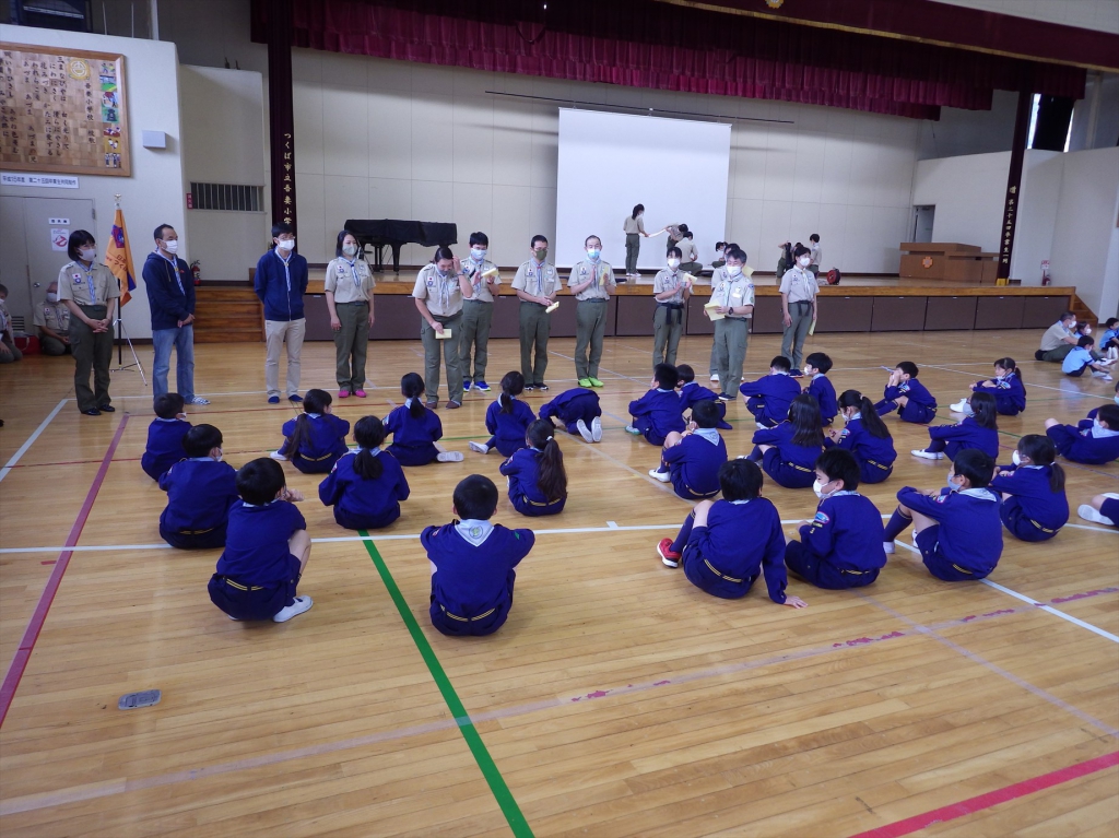 今まで、クマだったスカウトは、今日をもってボーイ隊へ上進します。