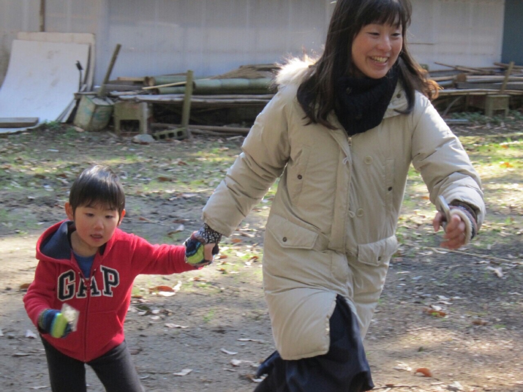 いつもは遠巻きで活動を見ているお父さんお母さんも参加です。