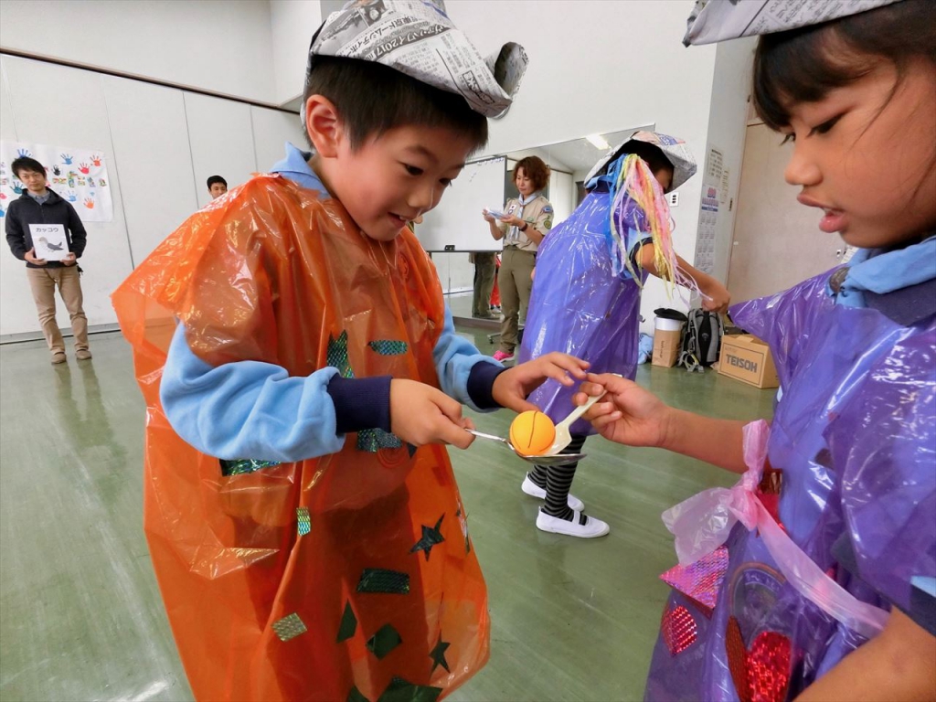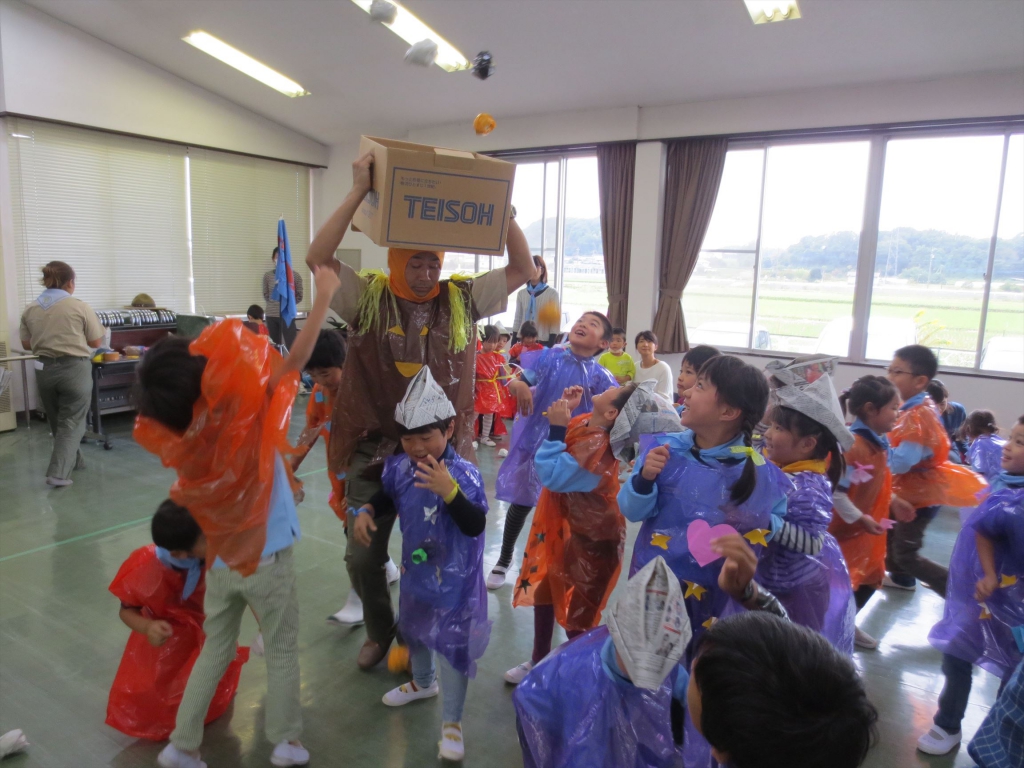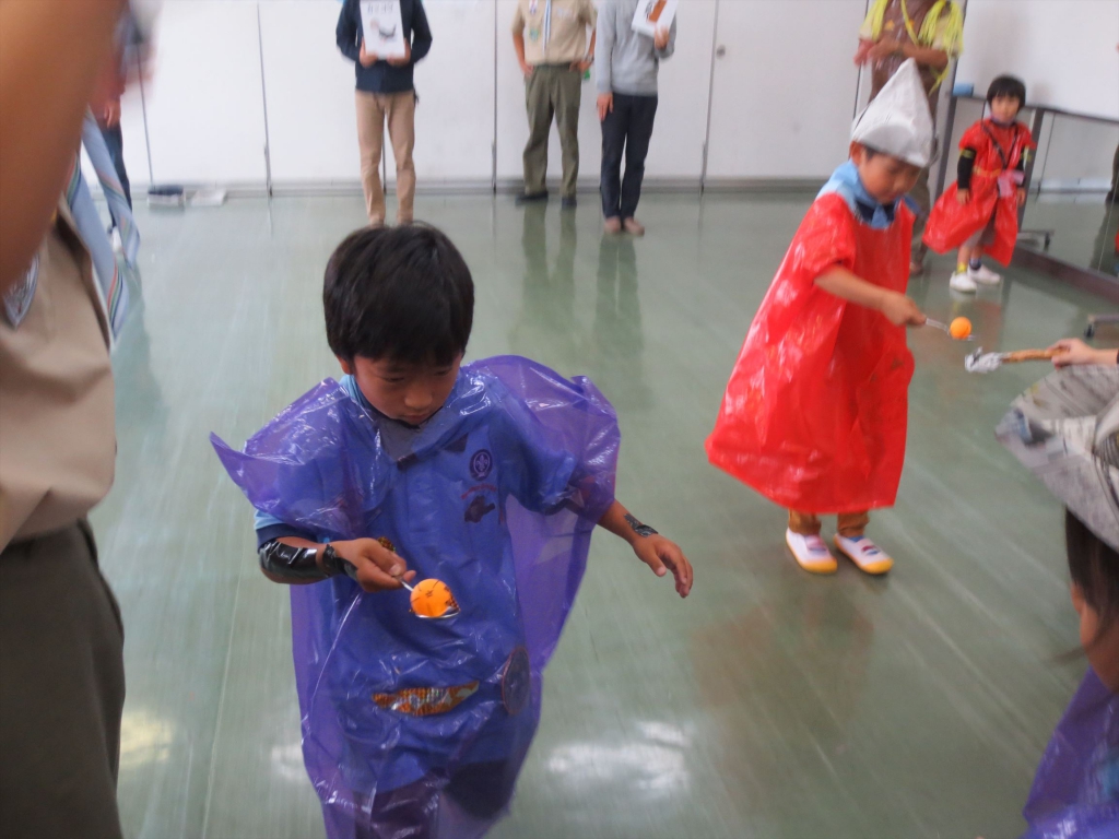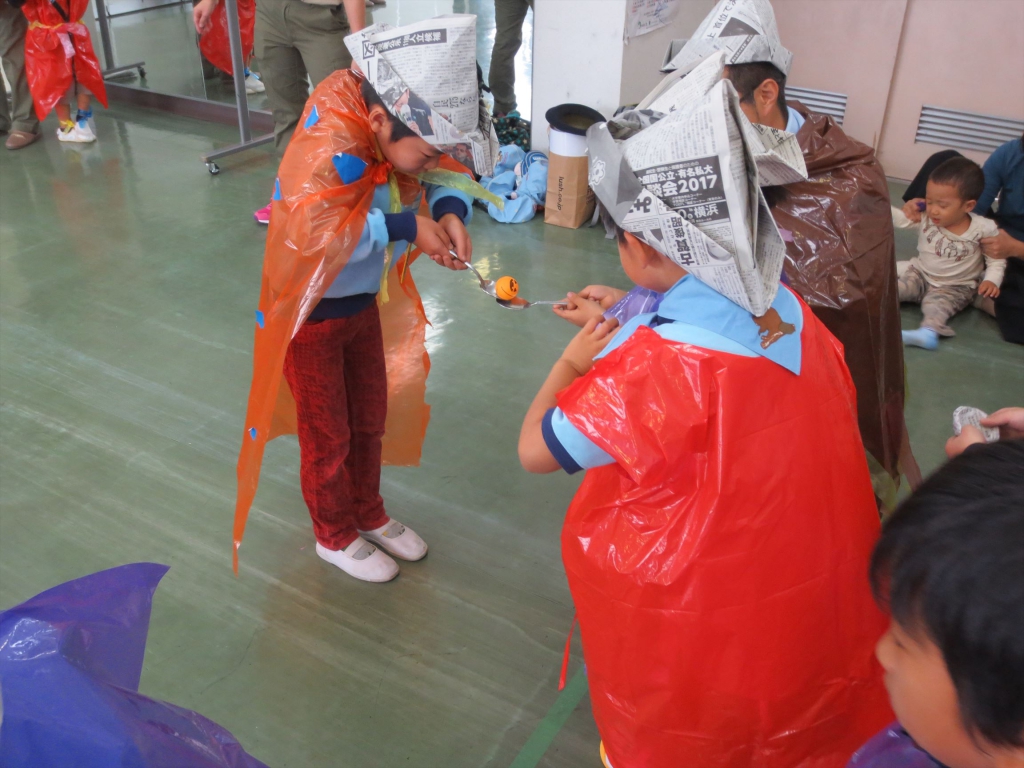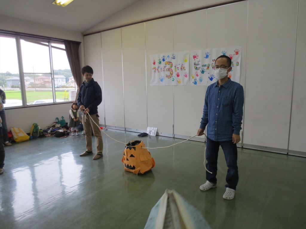 「ハロウィンボールを運ぶのはどのチームが早いかゲーム」でした。