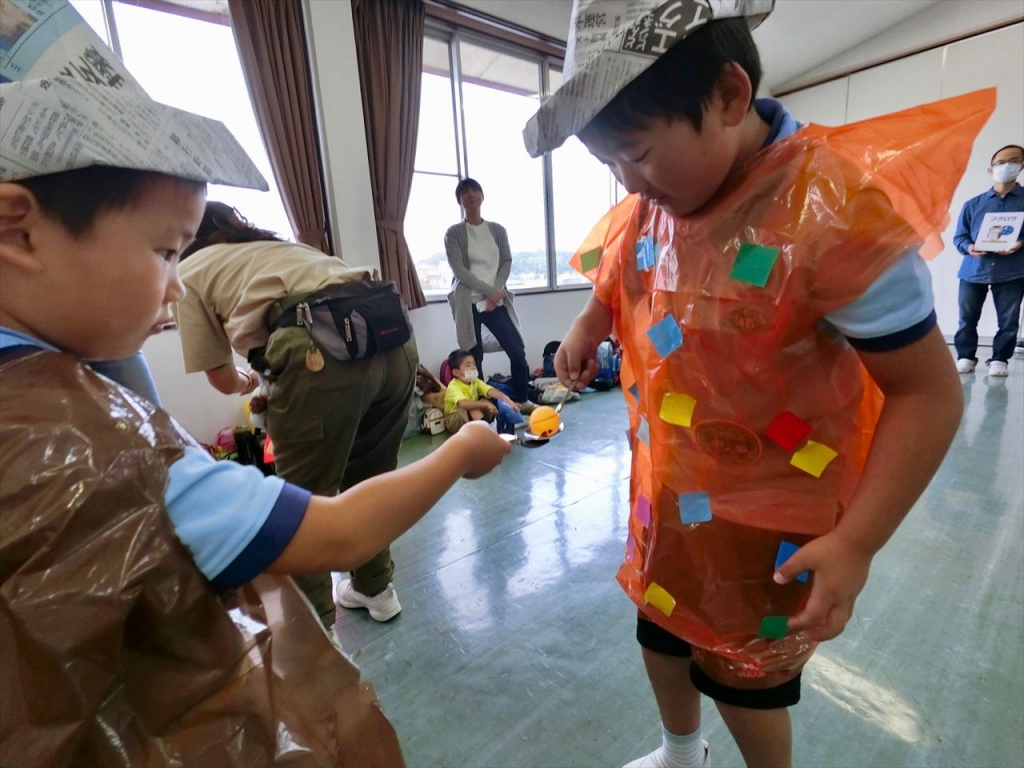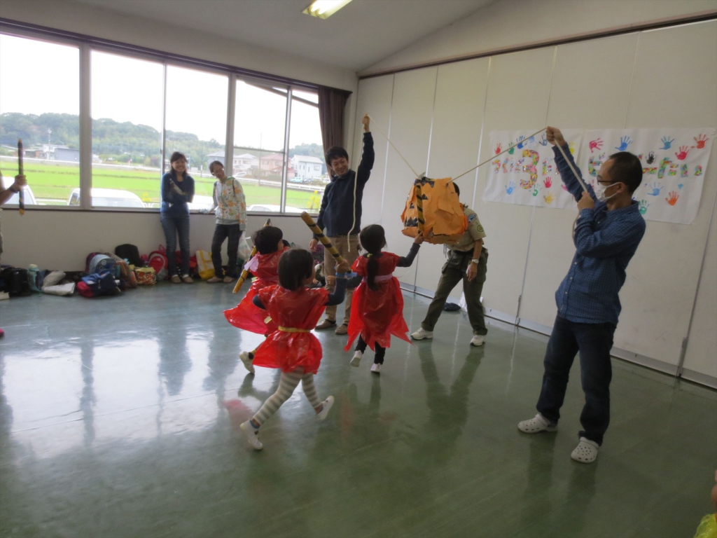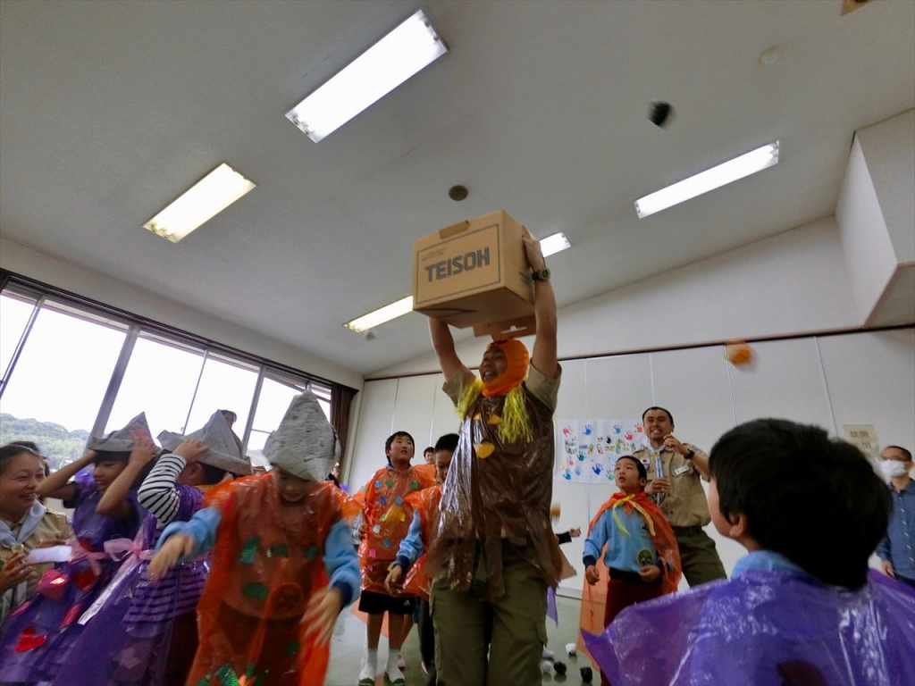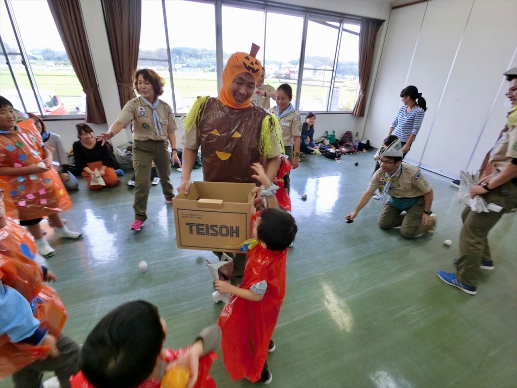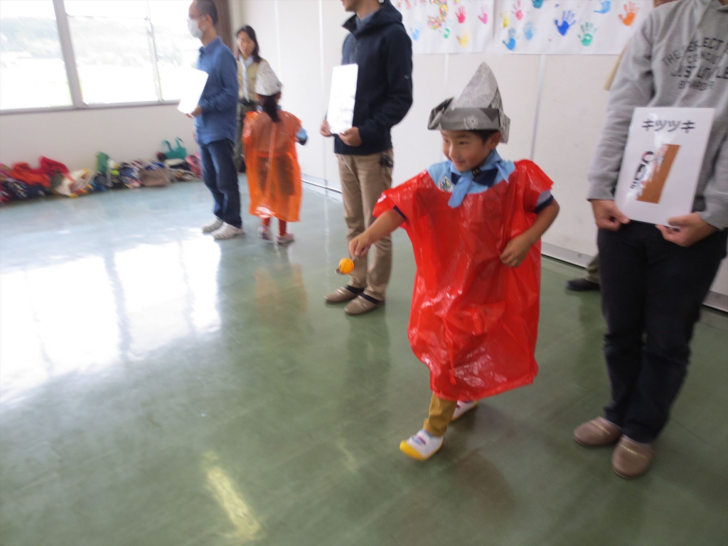 「ハロウィンボールを運ぶのはどのチームが早いかゲーム」でした。