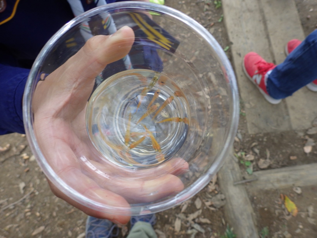 次は、池のザリガニを釣りました。