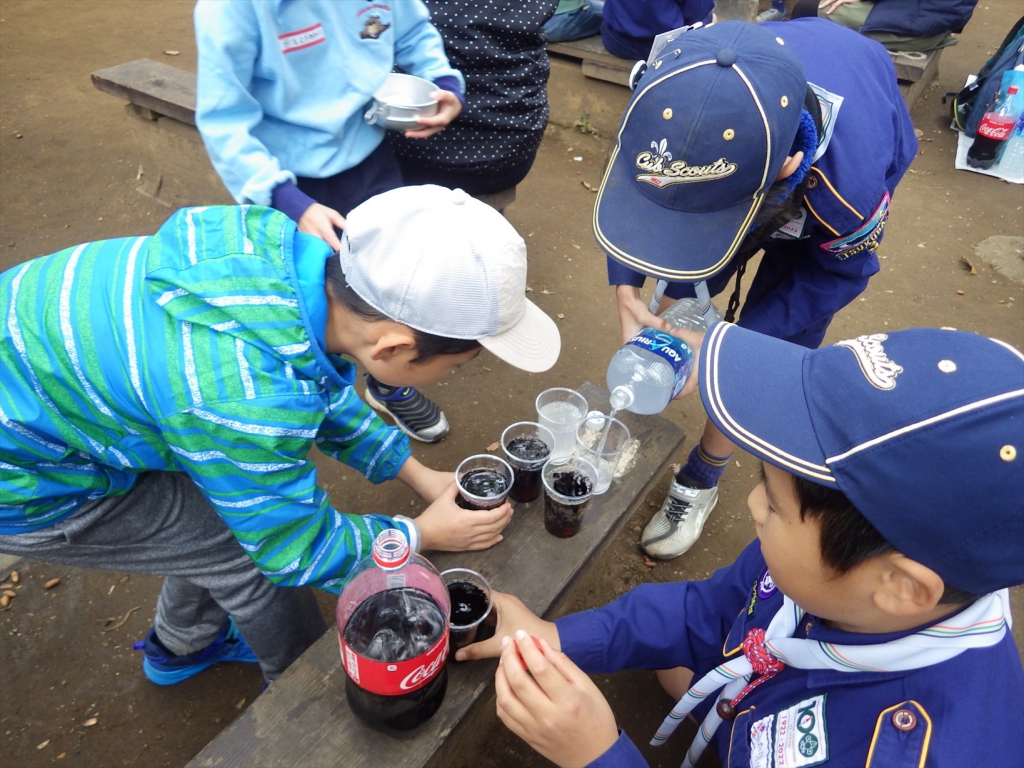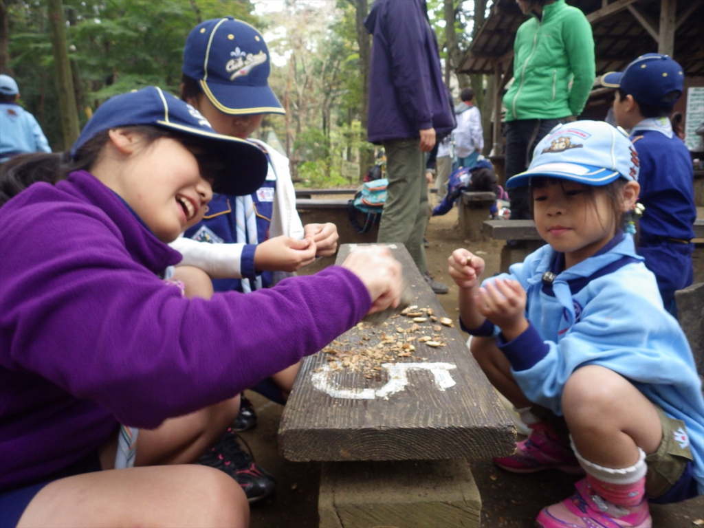 今日の活動は、カブ隊のお兄さん、お姉さんと一緒に活動しました。