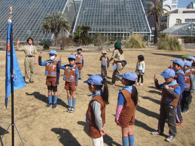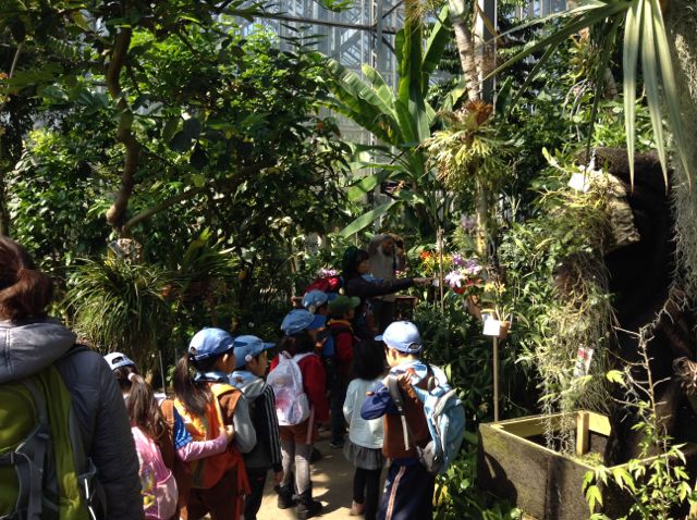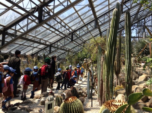 屋外展示の植物たちは春まであと少しという感じでしたが、大きな温室の中は汗ばむほどの暖かさで、色とりどりの蘭の花や不思議な形のサボテンにビーバースカウトたちは興味津々でした。