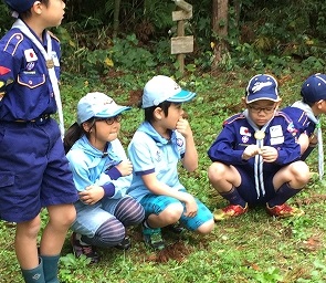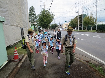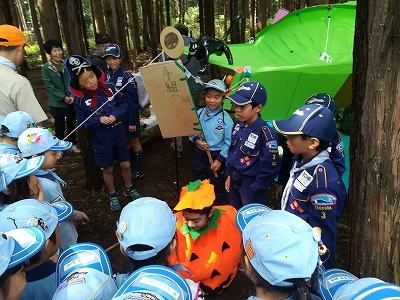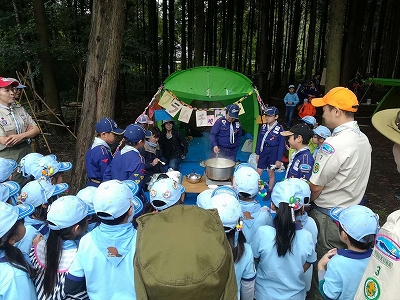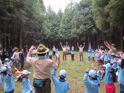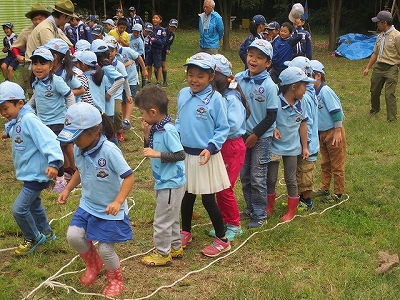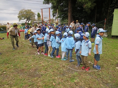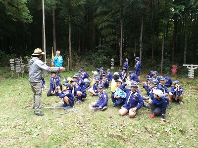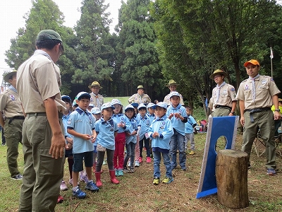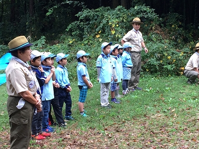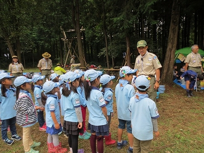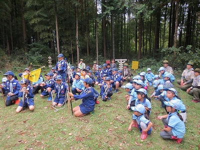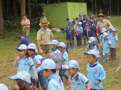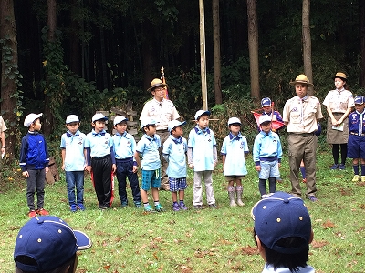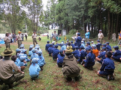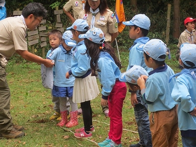 もとい、「リスの道」。開始です。隊長から、カブスカウトの隊長に引き渡し式が行われます。