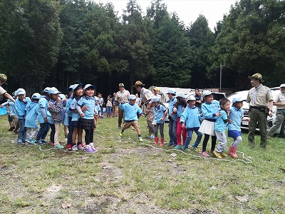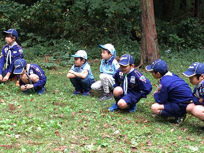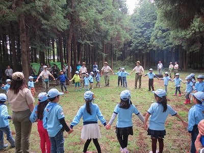 ゲームの後は、カブスカウトのお兄さんお姉さんに、お礼の歌「虫の声」を歌います。