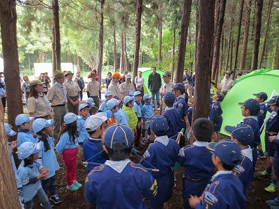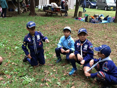 おお、カブスカウトのお兄さん達は、号令無しで「気をつけ、休め」ができている。
