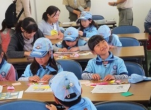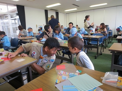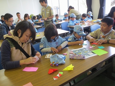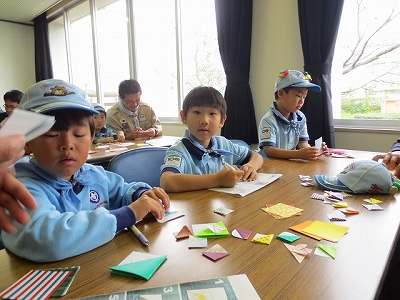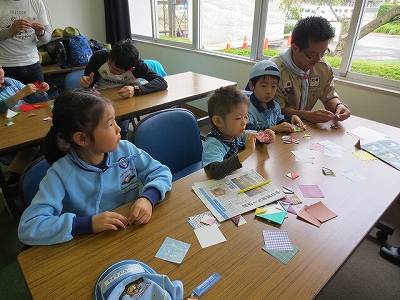 折り紙のお礼がたくさんできあがったので、ビーバー、ミニビーバー達は、カブスカウト、ビッグビーバー達の待つ、