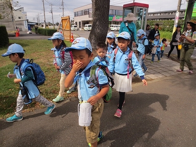 あかげらの森に出発します。車に気をつけながら、ちょっとしたミニハイクになりました。