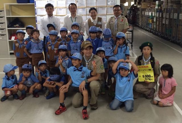 スカウトたちは、いつも訪れるお店の裏側で働く人たちとお話したり、大きな冷凍庫や初めて見る機械に大コーフンでした。