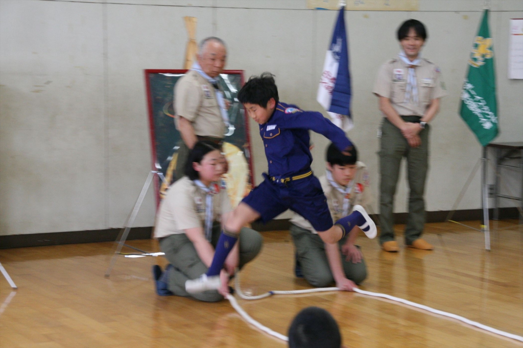 川にみたてた、ロープを飛び越えて、カブに上進するんですよ~!