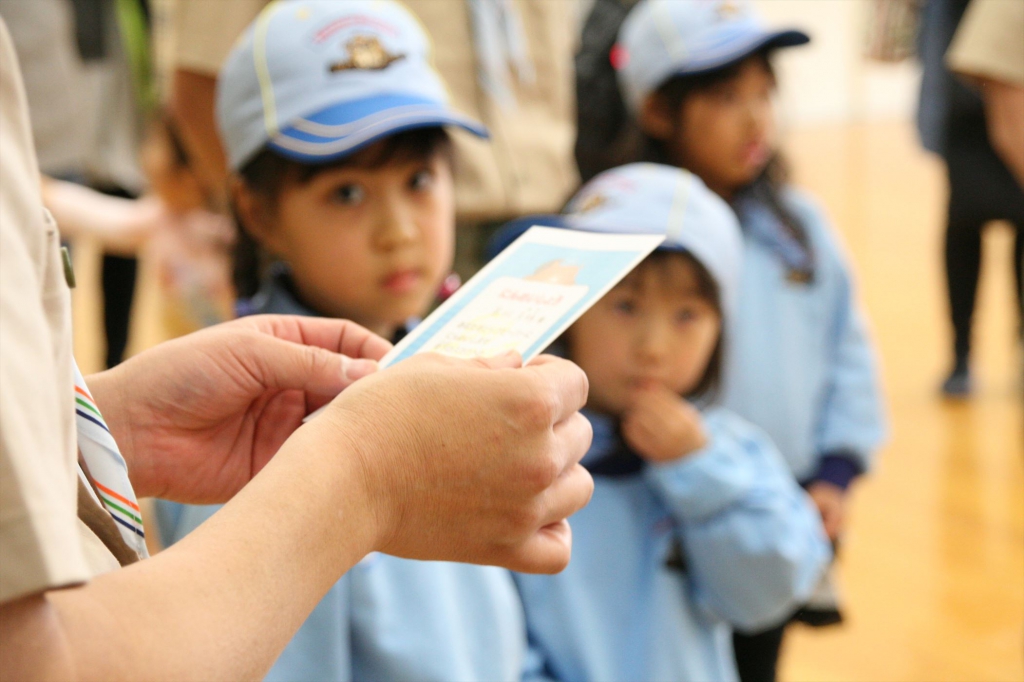 特別なことしたおともだちには「隊長賞」や、記念のプログラムにはバッチをもらえるんだよ。