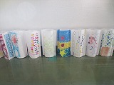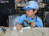 描き上がったら乾かして貼り合わせ、先ほどのペットボトルにかぶせて完成です。