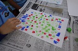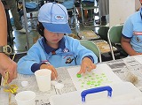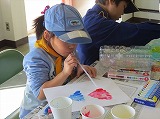 こっちではストローで絵の具の水たまりを吹いて模様を描いています。