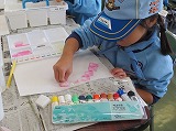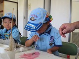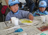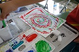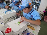 おや、こっちではスポンジに絵の具を付けてスタンプみたいペタペタ楽しそう。
