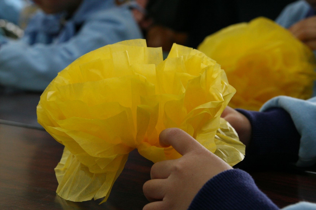 みんなで、紙のお花や風船で、テーブルメイクをしました。