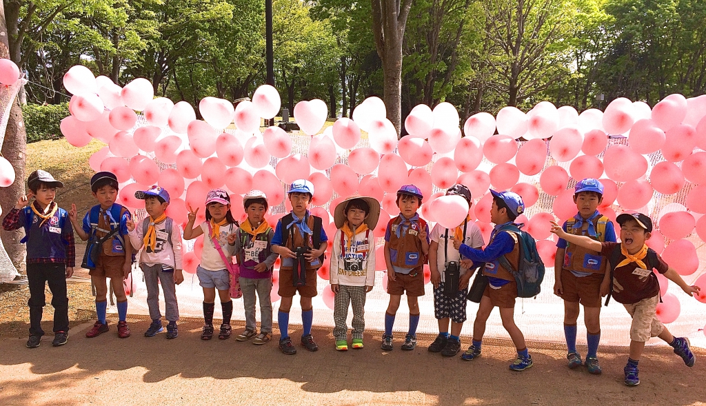 ビーバー隊の元気なスカウトたちは、「乳がんで悲しむ人を一人でも減らしたい」という願いをこめて、ピンクの風船を持って、竹園公園から松見公園まで往復5kmのコースを完歩しました!