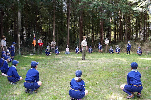 想いのこもる隊集会は、りすの道で10月からカブ隊に仲間入りするビッグビーバーを迎えてスタート!