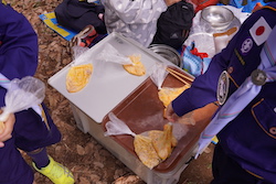 でも、突然の雨でも、各組のスカウトとデンリーダーが連携して作成中の壁画アートを安全に避難させる事ができました。