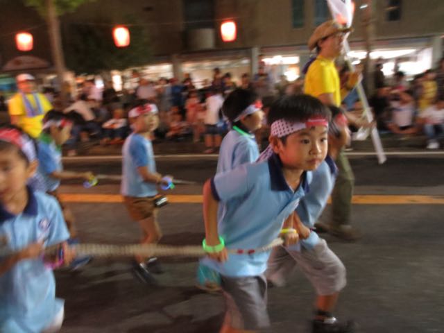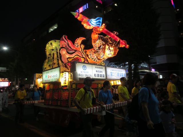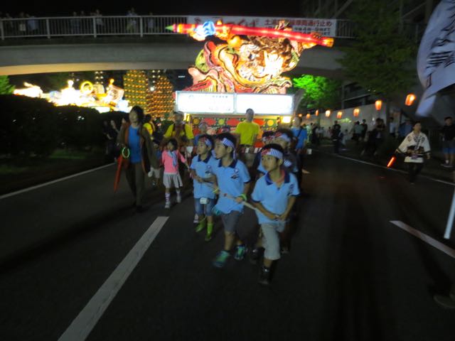 夜も更けて、お祭りは最高潮です。スカウトたちは、最後まで元気にねぶた曳きの大役を全うしました。