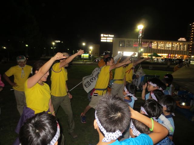 スカウトたちは、お揃いのタスキとハチマキをキメて、元気に出陣していきました。