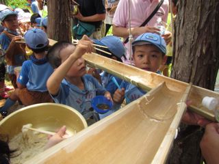 梅雨明け最初の活動日は、あかげらの森で七夕まつりと納涼流しそうめん大会を行いました。みんなで仲良く七夕かざりをつくったあとに、親子揃って流しそうめんをいただきました。そうめんと一緒に流れてくる さくらんぼや氷に スカウトたちは大興奮でした。