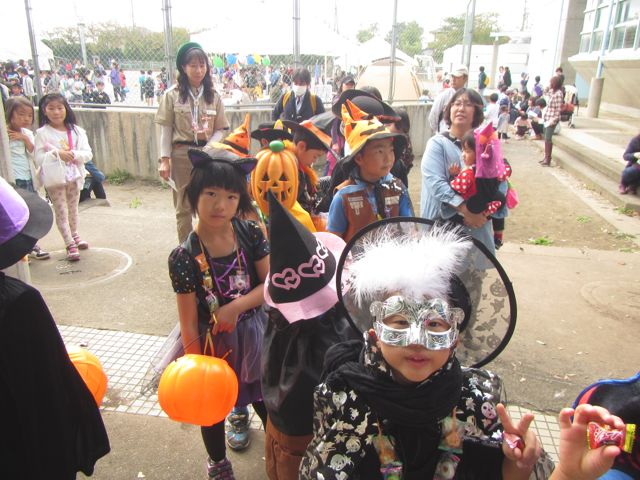 今年も二の宮フェスティバルで、ビーバー隊の活動の中でも大人気のハロウィンの仮装パレードをしました。可愛らしいモンスターたちが二の宮小学校の構内をパレードして、フェスティバル会場の皆さんにキャンディーのプレゼントをしました。突如現れたちびっ子モンスターたちに、行く先々で歓声があがりました。