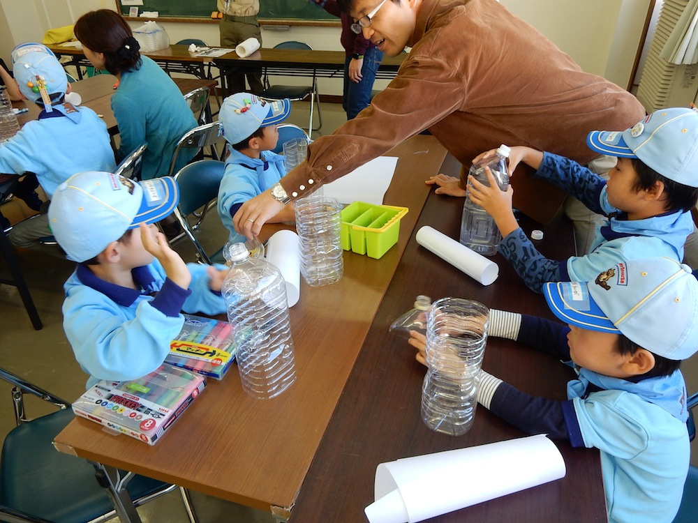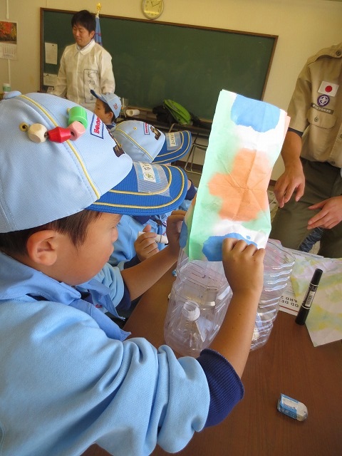 次は、和紙とペットボトルを合体! 完成が近づいてきました。