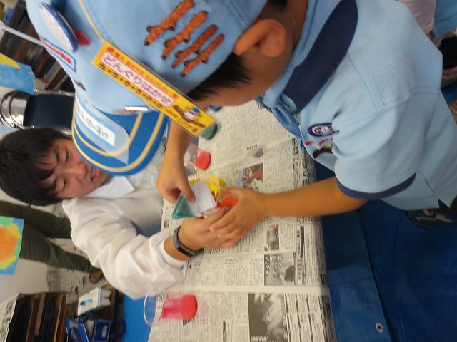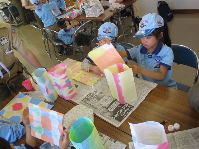 きょうはみんなで、和紙を染めてランタンを作りますよう~♪