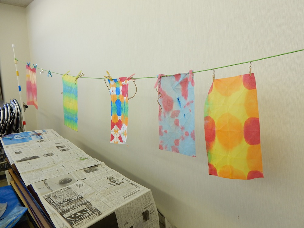 染めた和紙はひとまず吊してから、ドライヤーで一気に乾燥!!