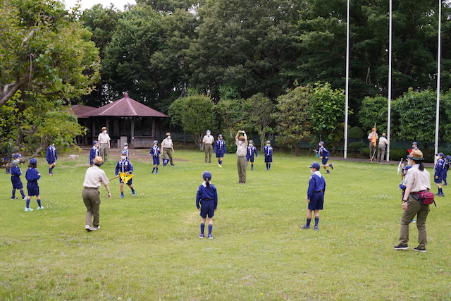 最後に隊長に向かって立っていたスカウトたちが正しい向きでした。